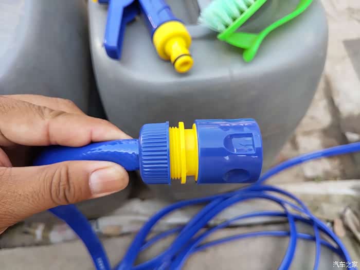 1、配件齐全,基本的水管和水枪以外,还有其他洗车需要用到的例如,洗车海绵,洗车毛刷,擦车手套等,一个小小的套装,麻雀虽小五脏俱全,不太需要再额外准备其他的洗车工具了,如果有,那就自己在准备一个折叠水桶就好;