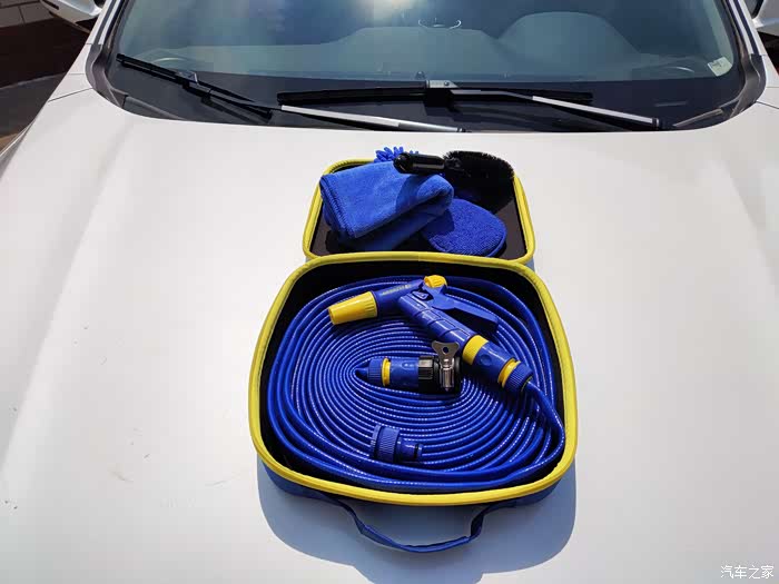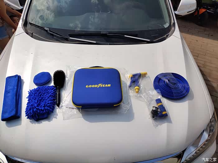 喜欢动手的朋友肯定是经常自己来洗车,一方面是因为洗车店洗车除了那种费用不菲的,其余的一般是快速冲洗,不到十来分钟就搞定的那种,特别的损伤我们的爱车,另一方面是因为这样可以让自己的车经常的保持干净亮洁,十分的养眼,开着也十分的舒坦,还有另外一方面就是这一年下来的确可以省下不少的洗车费用,对于养车上节省下来,给车子其他方面更好的养护,例如,保养换好机油。今天这款洗车套装就是带给那些,平日里养车用车比较仔细,不会经常弄得车子全是泥土污渍的车友朋友们,不需要兴师动众的准备高压洗车机,只需接通自来水管就能快捷的给车子洗刷刷。品牌是固特异的,在汽车用品领域也是一个比较出名的牌子了。在做工方面,还是比较不错的,造型方面简约大方,很是实用,材质上更是用料地道,配件除了洗车的水枪、水管还有擦车毛巾,擦车毛刷,洗车海绵。使用便携设计,全部配件装在包装盒里面即可,占地不大,可以放在车里,车子走到哪里,只要有水龙头便可以接上给车子冲洗冲洗。