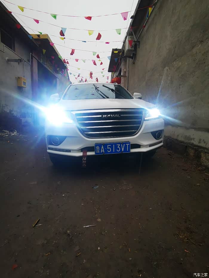 之前改装的氙气大灯,夜晚的时候够用。