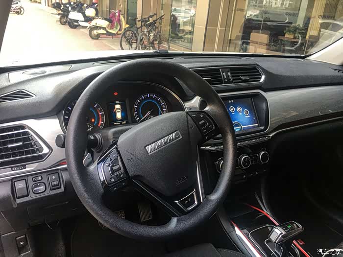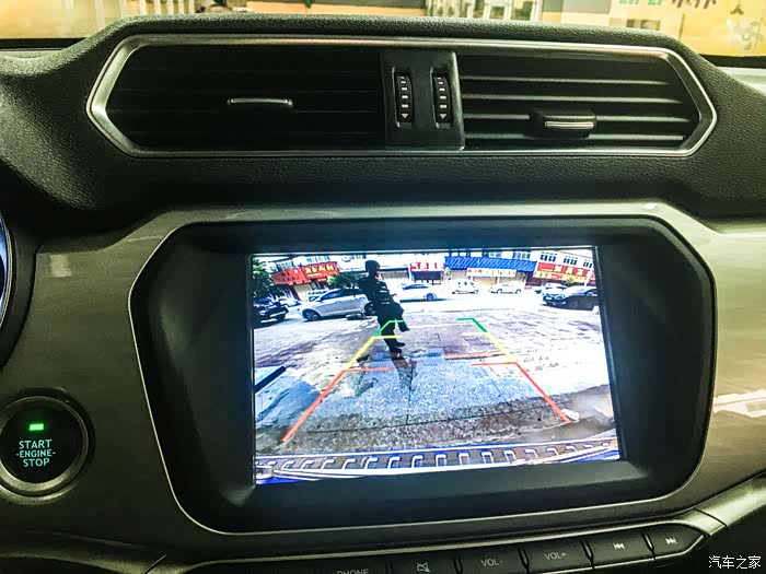 弄好后就倒车出店外了,这个屏幕我非常喜欢,非常清晰,能看倒车的影像,还有辅助线可以看,倒车都从来不担心会撞击到后方的物体。