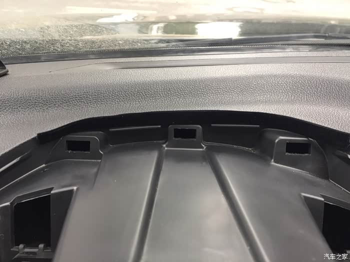 异响有很多可能,如何区分是不是与我的一样,可以用此方法初步判断。在开车到粗糙路段,有异响时,按住仪表盘上面遮挡阳光的那个“舌头”,就是中间突出那块。如果按住不响了,可能就是我这个原因。先看一下拆开照片。