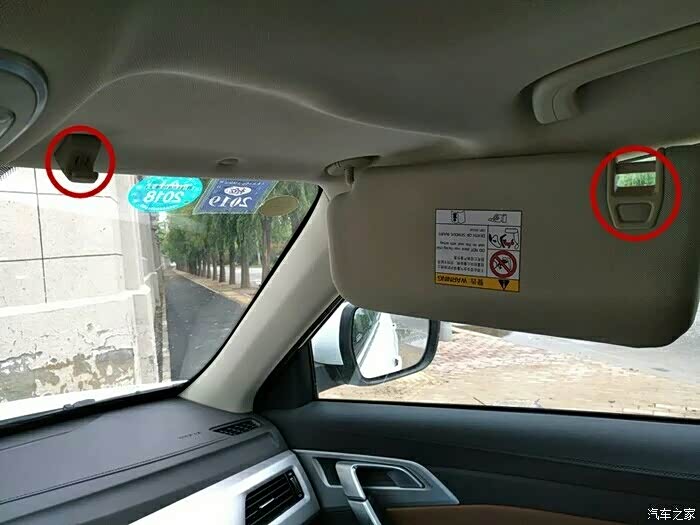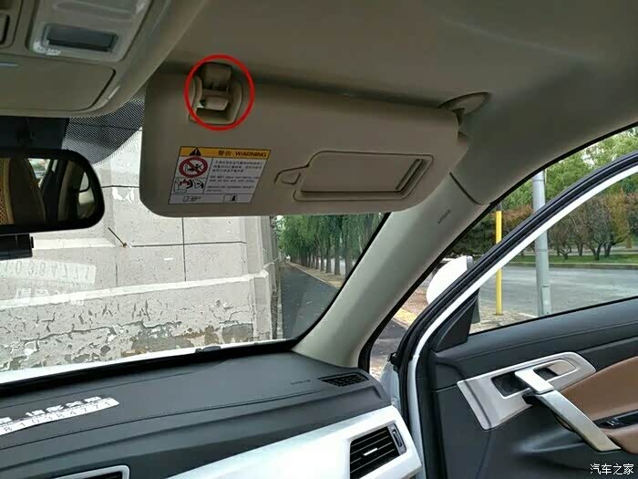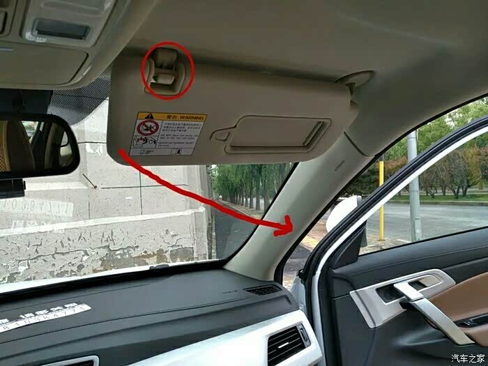 遮阳板大家都知道可以从前面遮挡阳光,殊不知还可以遮挡侧面的阳光,注意下图红色圆圈内的卡扣