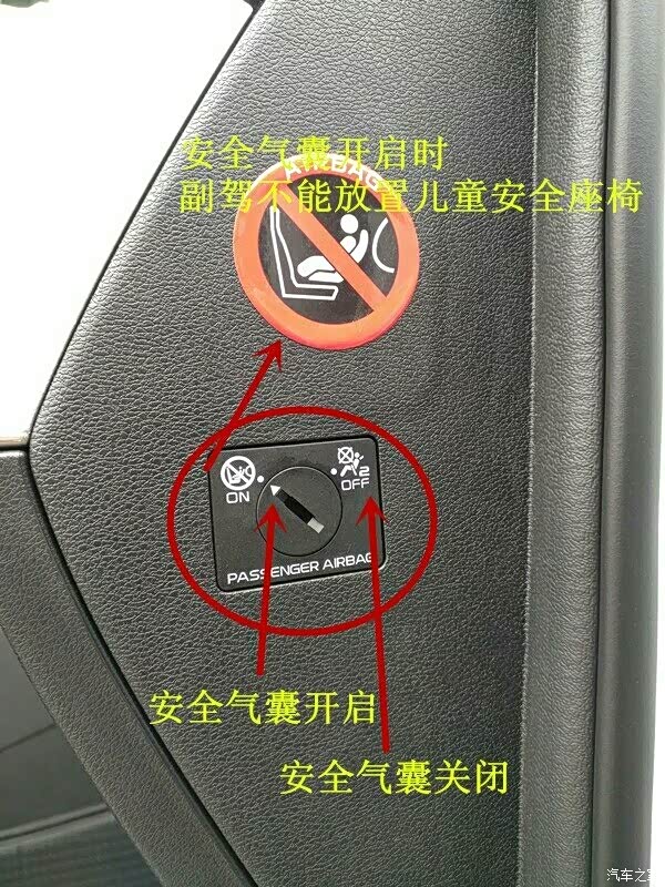 其实如果自己一个人驾驶车辆,或者把儿童座椅安装在副驾驶位置时,这时候完全可以把副驾驶位置安全气囊关闭。