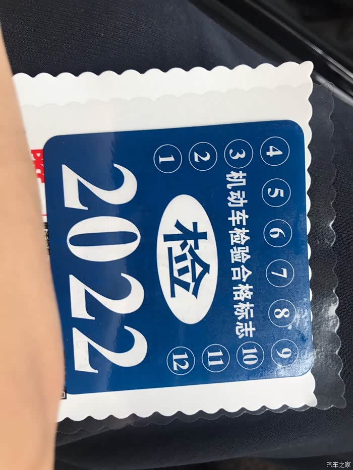自己贴完年检标拍了一张