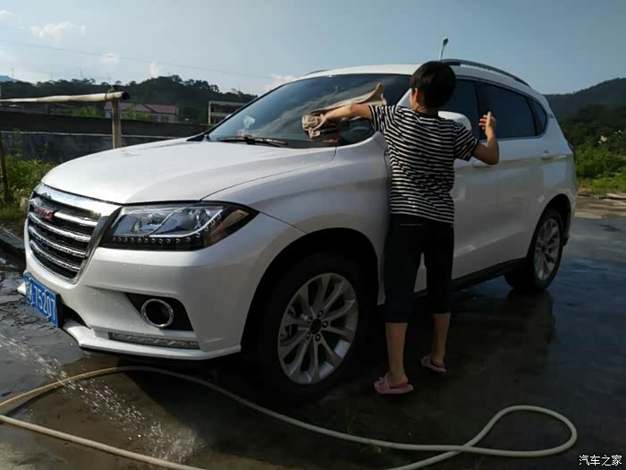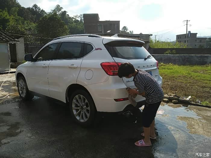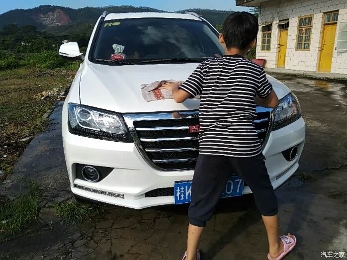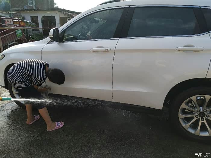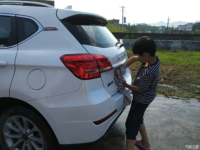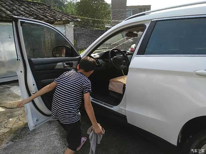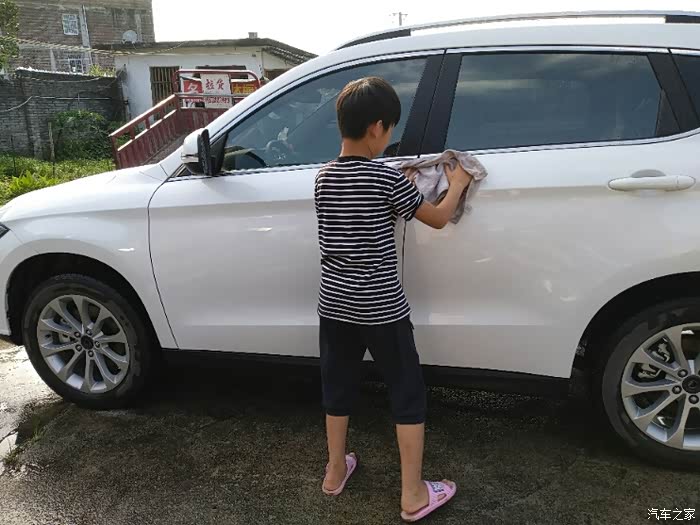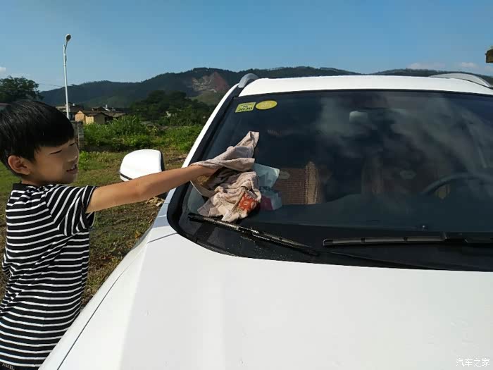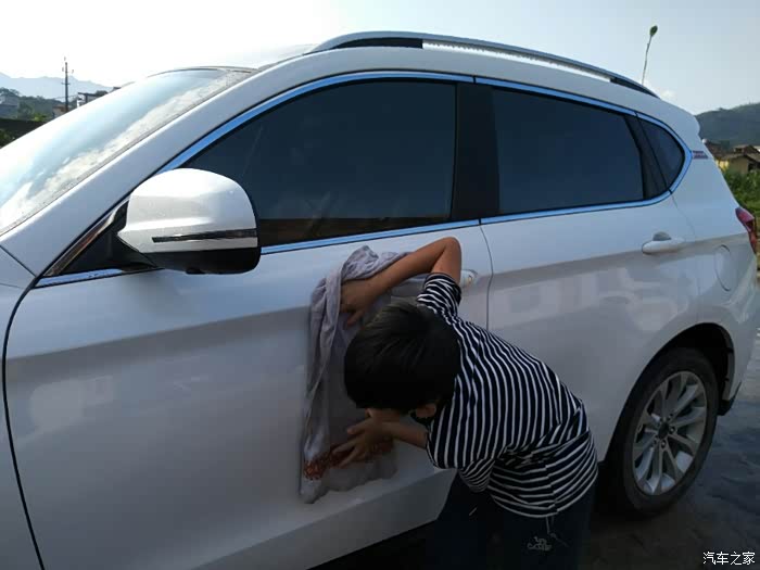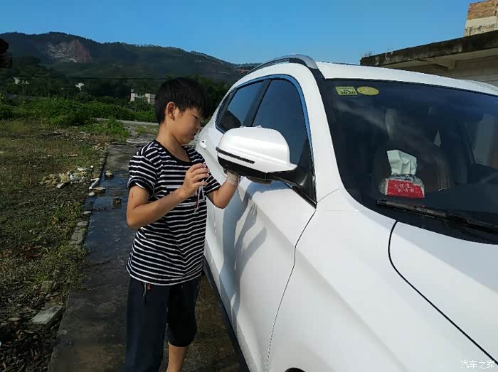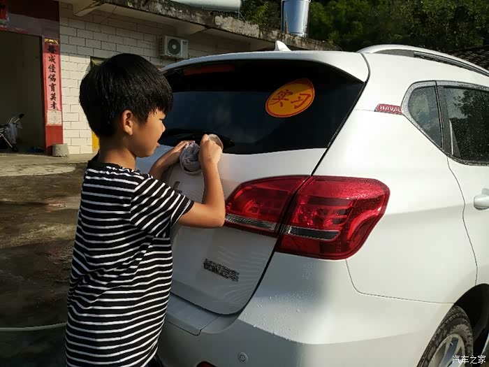 看看我儿子洗车还是挺专心的..而且是非常的高兴..毕竟是第一次干这个活..