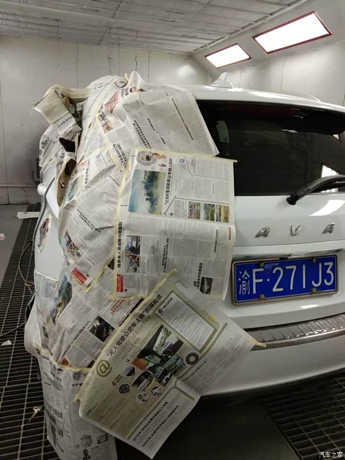 弄完后师傅开始用报纸遮挡,避免喷到其他面上。