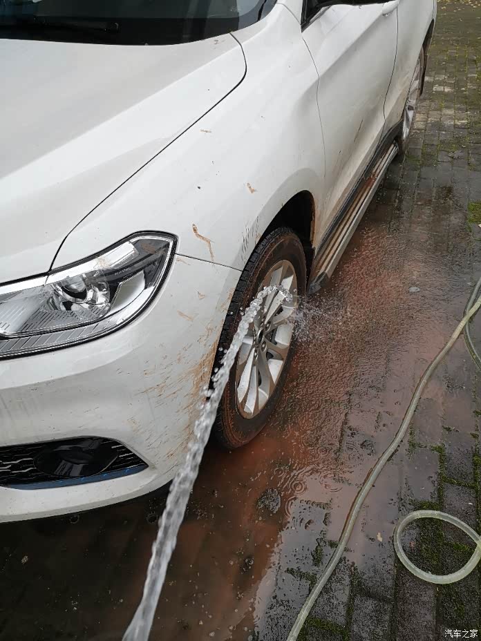 车实在太脏,去洗又要25个大洋,所想家中反正地理位置方便,何不不自己签水管洗车,说干就干,先去找了20几米的水管,接上主水管,本以为很简单一个事,结果意外惊喜真不是一般多。由于接口处水管也是向下,所以压力很大,水管套上去就冲掉了。为此我折腾了两次!终于在我爷爷的帮忙下,把这次车洗了。