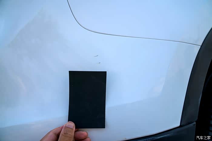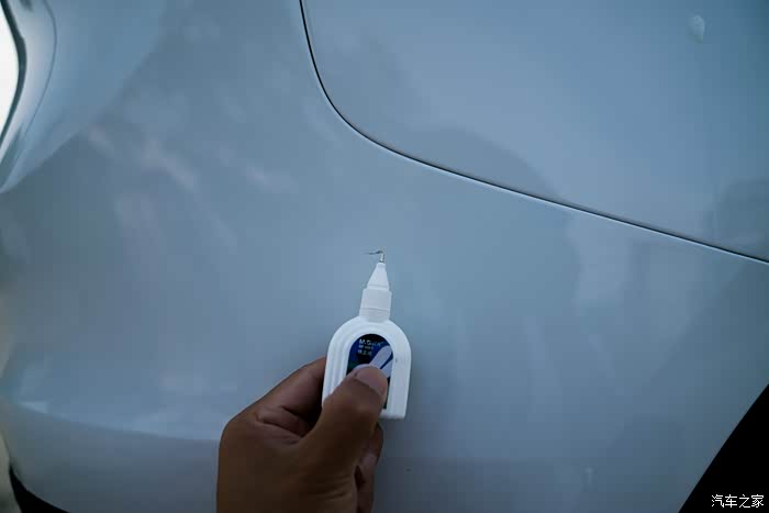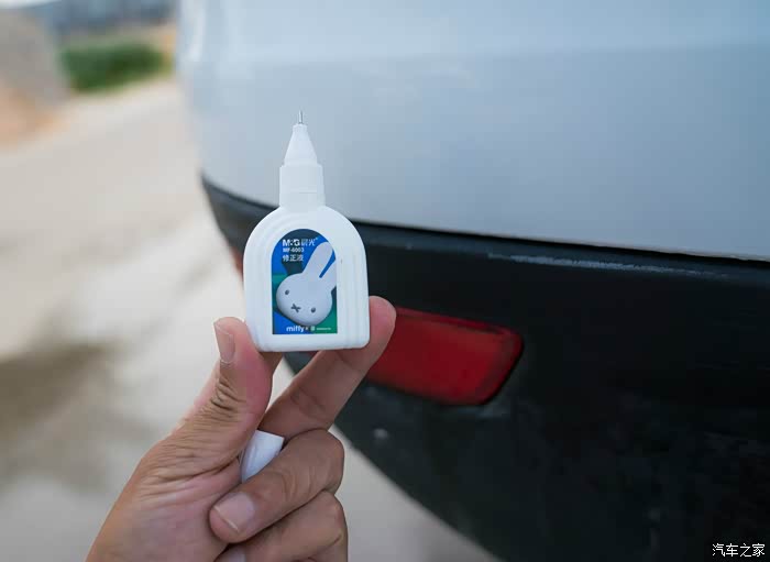 怎么样?深划痕被遮盖了,除非你的脸趴在车上,你才能仔细看到修正液的白点。我觉得如果你没有强迫症,完全可以忽视这两个小点不用去管它。已经完美无瑕。