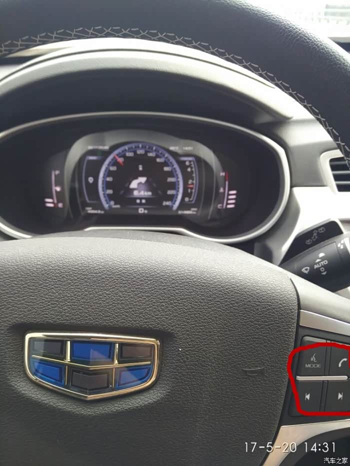 博越的仪表按键激活后,就可以使用音响按键来控制仪表盘啦,音量键调节上下菜单,上下曲调节左右菜单。MODE键用于确认作用