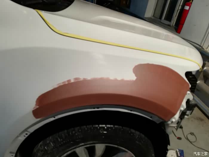 出去了一会最后一遍灰色的底漆涂完打磨平了我没有照上大白已经开进了烤漆。