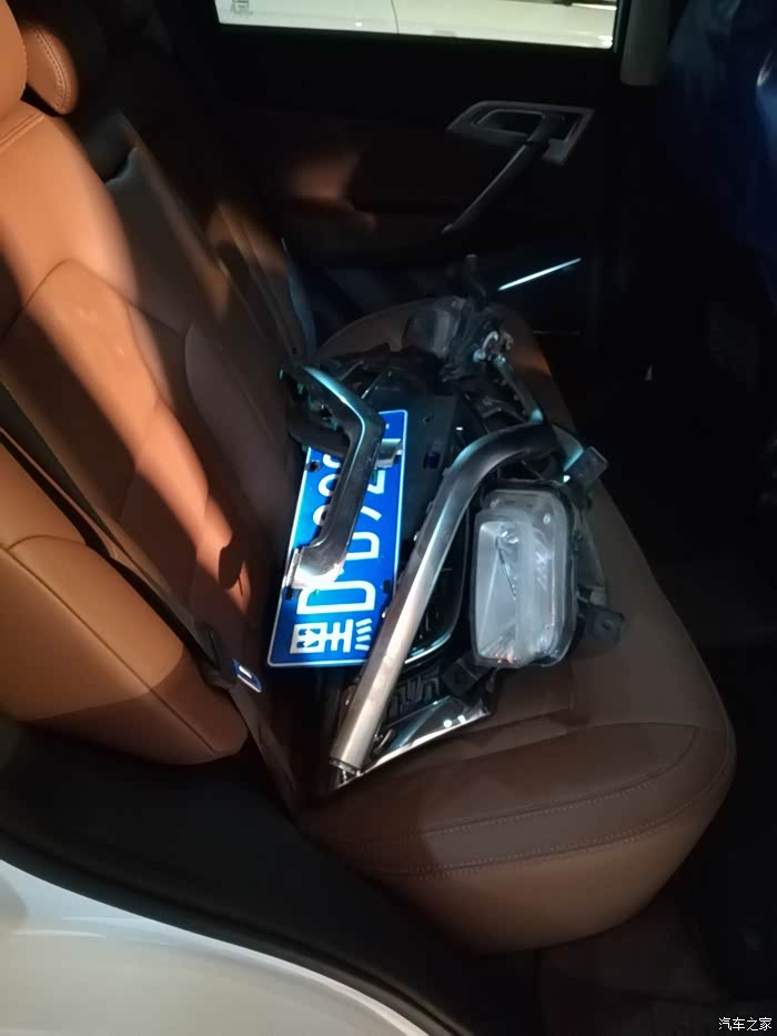 拆下来的车灯和其他配件都放我车里了,也没说给我座椅垫一下[发怒都]放完了先这么地吧!