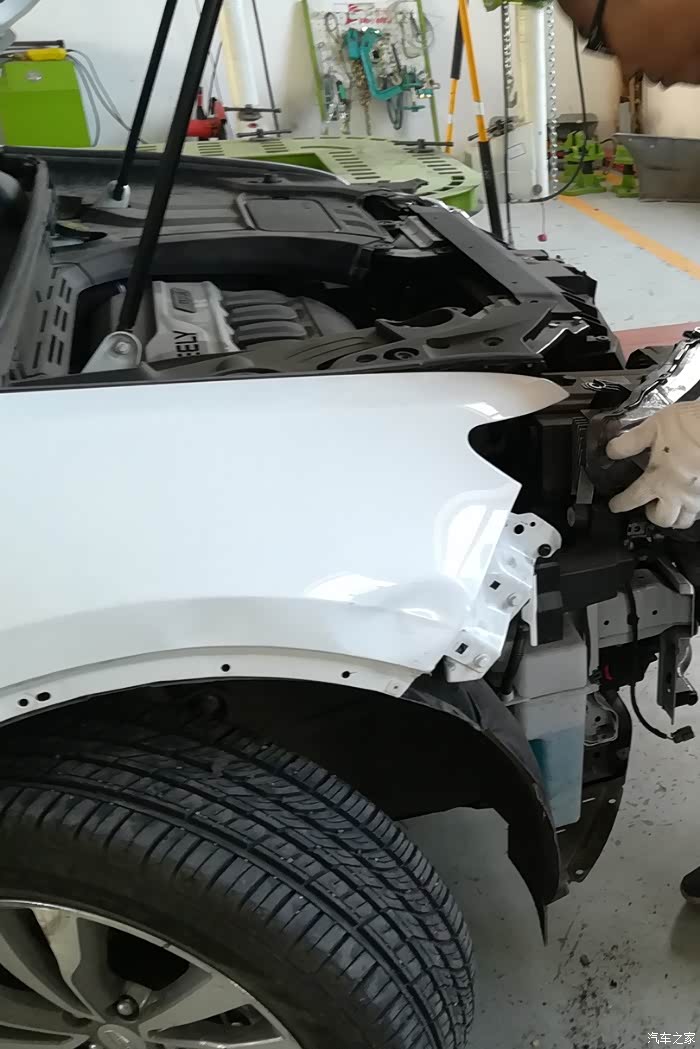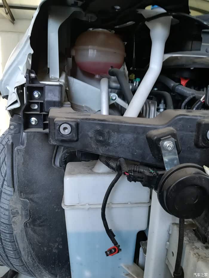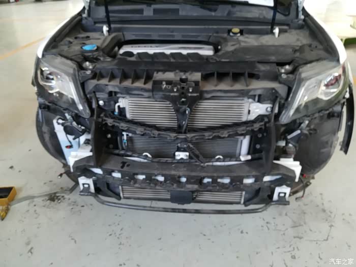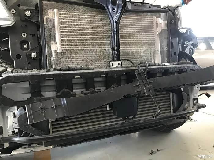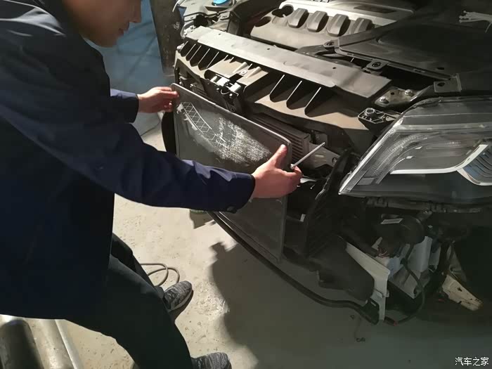 第一次看到保险杠拆下来露出散热片防撞梁的样子,博越还是蛮结实的。