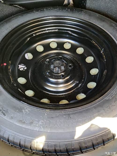 4为了提高安全,把左后轮胎放在,车的左侧前轮与后轮的中间,这样能保证我们换轮胎中的安全,有效防止千斤在支的过程中,倾斜或者倒了,对我们的人身安全起到保护作用。