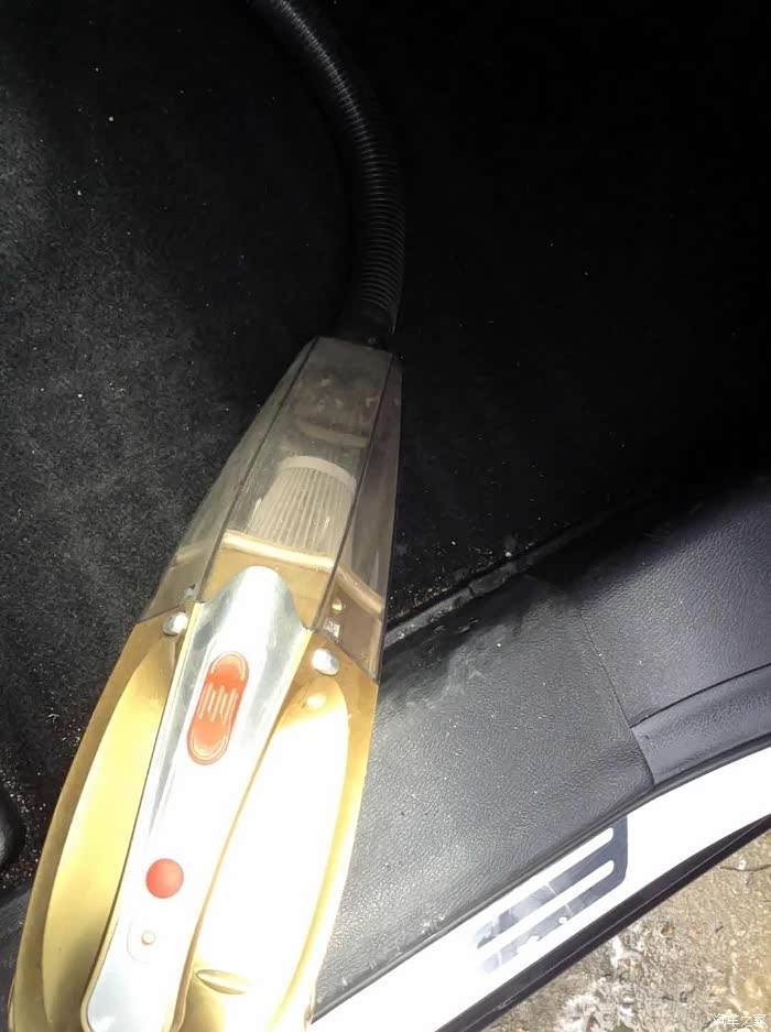 已经准备就绪的吸尘器。准备就绪后就开始工作,先将车内的异物先吸一遍,然后就是拿毛巾擦。