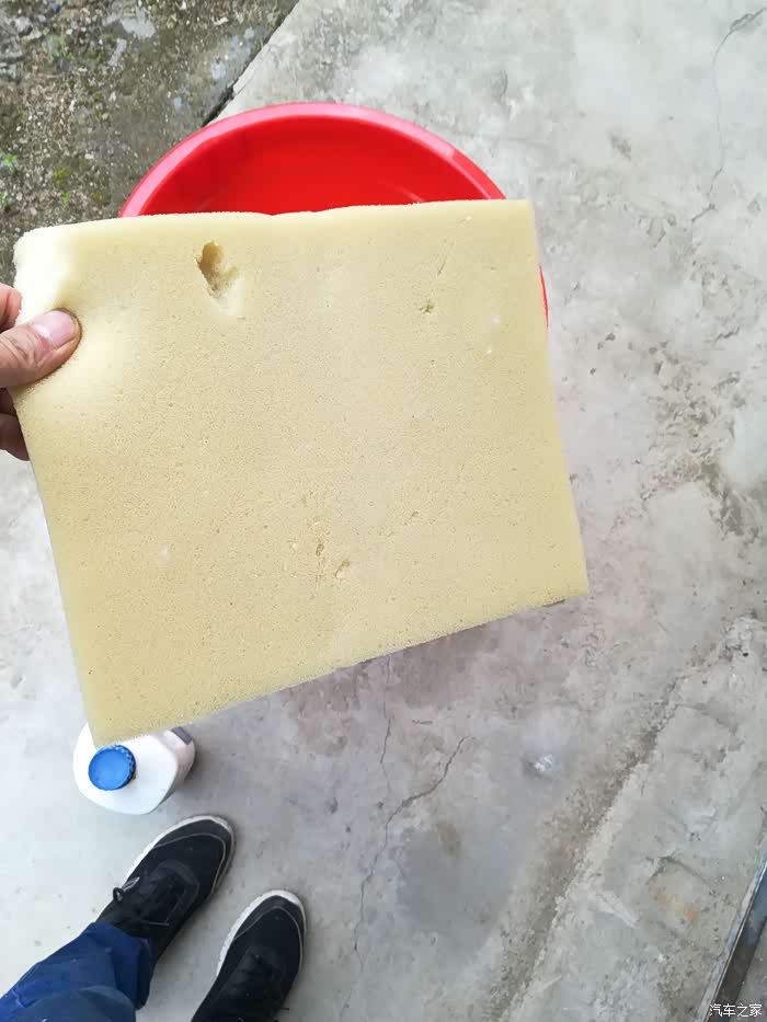 喷完以后开始用海绵擦了。