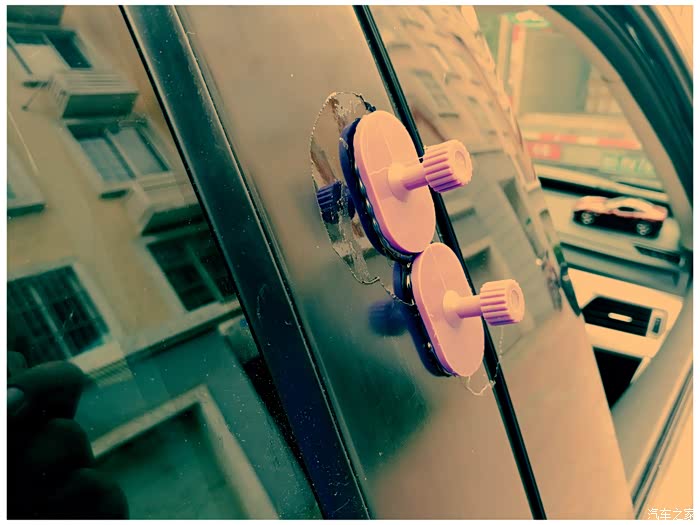 此时,悲剧出现了,因为拉拔力量太大,将中柱上贴的黑膜拉破了,咋办,在询问了售后说有货之后,我放心了,先整完了,然后再去重新贴吧!