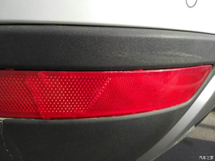 不啰嗦了,简单看看受损情况, 右后侧保险杠大概三四处掉漆,都很小,不到小拇指指甲大。黑色包围有点划伤,忽略不计了。再就是反射板裂纹了,以及保险杠前部与车身连接的卡扣翘开。下面上图。