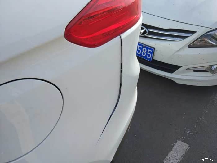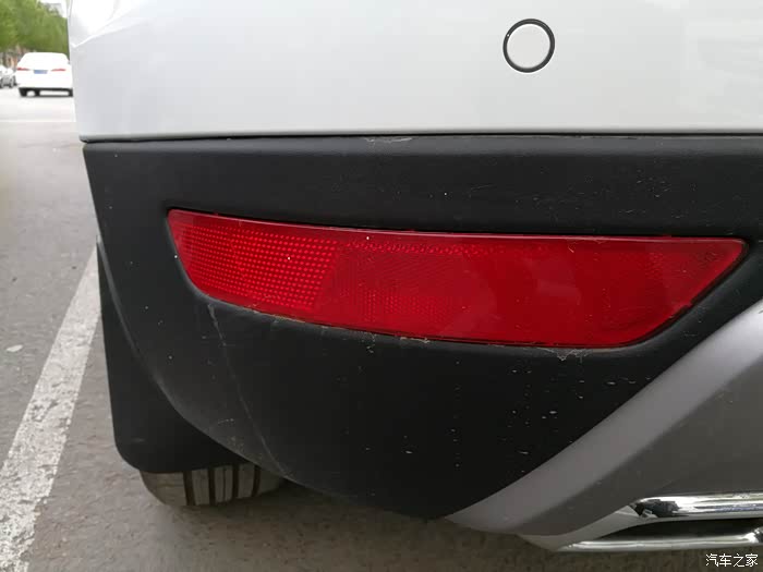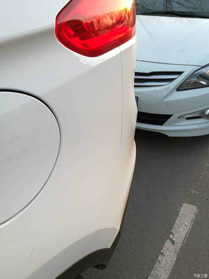 掉漆其实不那么明显,翘开这个地方就明显了,很显然撞过了,很不美观。对于这种情况,一开始我也没见到过。仔细观察之后,发现了翘起的保险杠前端有卡扣,试着往里推了一下,没反应,再使劲一推,咔哒,合上了!再靠下侧使劲推,完全恢复了。对于我这个新手,还是小有成就感的,只不过引起了路人纷纷侧目
