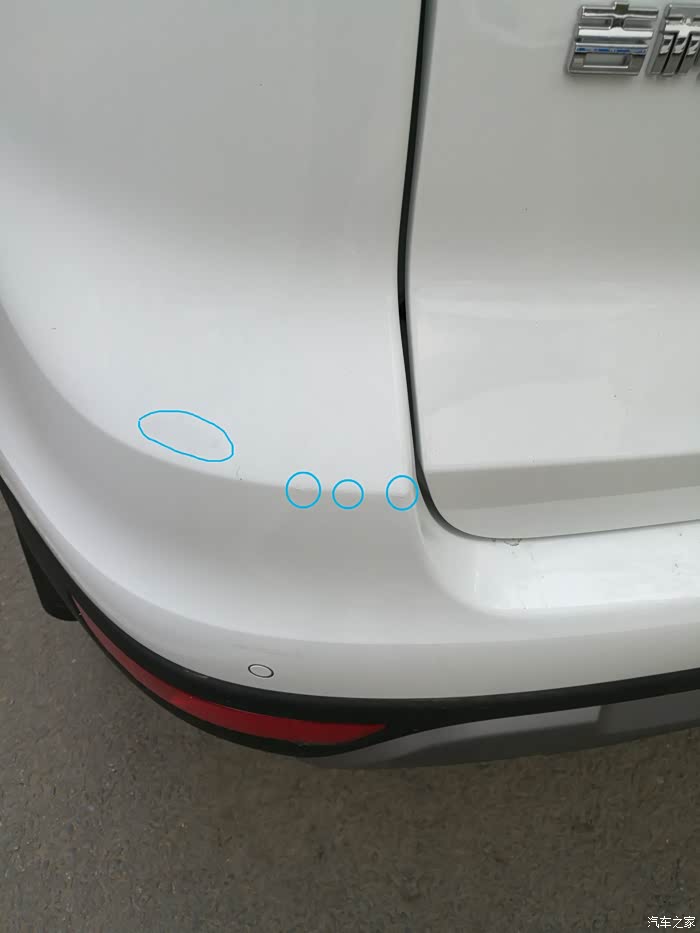 这个是对比照片,蓝圈是补过漆的地方,放大能看出来。实车是基本保证一米远不仔细看看不出来
