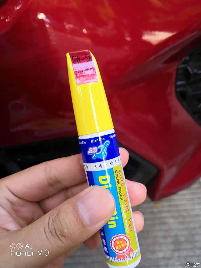 在白纸上试色,对比车漆。
