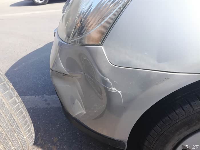 对方日产,保险杠凹进去了,漆也划掉了不少,小越越质量还是不错的