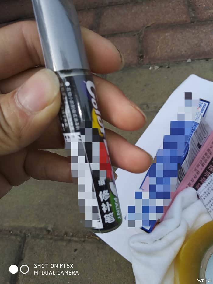 拿出补漆笔用手上下摇晃使车漆进行彻底的混合!