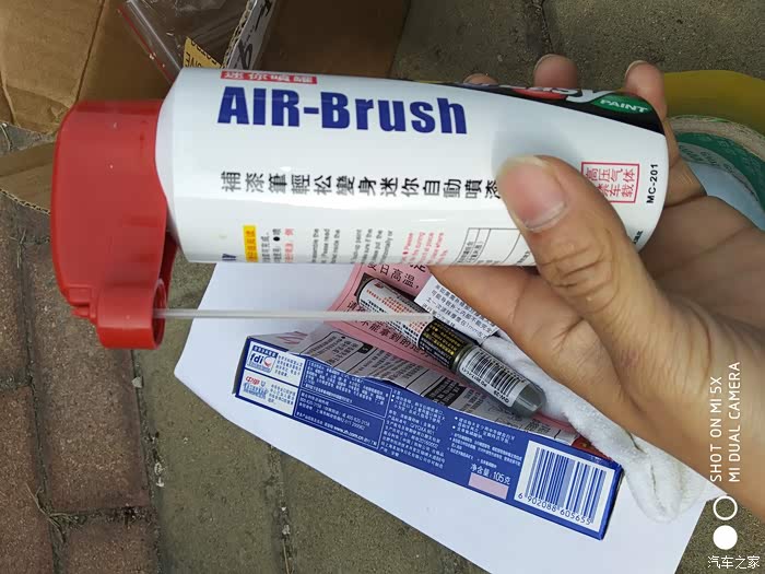 喷完后将补漆笔拆下,里面的塑料管不能再用!收起来以备以后用!这个气罐因为是高压罐,每次喷漆不能超过10秒,因为超过10秒气瓶将会过凉,造成喷漆效果不凉!此次修复总共用了6个小时,难度5星。有动手能力的可以自己尝试修复!修复效果相当完美,瞬间觉得自己动手能力也挺高的!