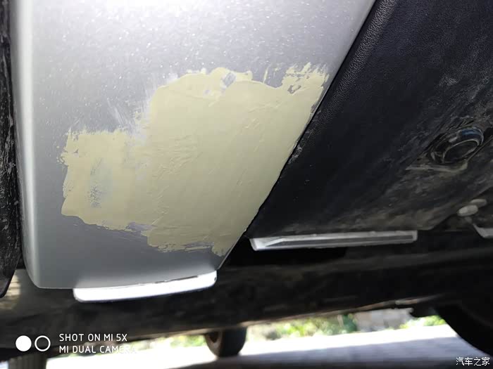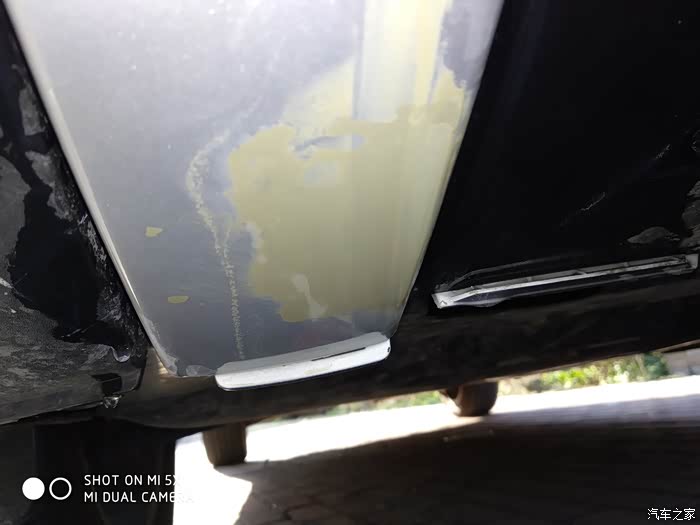 前期因为前杠装饰条无法拆下来,被迫只能在车上修复。这样增加了修复的难度,没办法只能硬着头皮上了!开始修复吧,修复流程是首先打磨刮伤,将毛边打磨平整后,用补土将凹坑补平,等补土干透后进行打磨,最后喷漆!不多说了开始施工,首先找个台阶把车开上去让车头变高,这样方便施工!