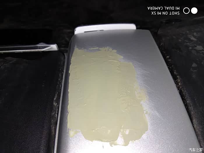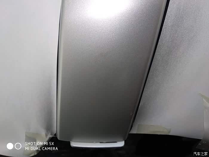 为了避免喷到两边的黑色塑料件上,用两张A4纸进行遮挡。距离表面不能太近要有14厘米左右进行喷漆,每次不能喷的过厚,要多次进行喷漆!喷的太厚容易造成漆面喷流!第一遍后的样子!还能看出腻子!