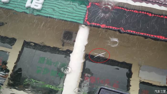 天有不测风雨,车有旦夕祸福。在高速上高速行驶,突然下着这大雨。通过一个人行天桥时突然听到一声响声感觉是应该是玻璃中奖了。高速服务区先确认伤情,外面依然下的大雨,明显看到玻璃已经受伤了。没有雨水的渗透,确认只要外面破裂。经过过资料了解前档玻璃是双夹层玻璃,夹层玻璃是由两片或多片玻璃,之间夹了一层或多层有机聚合物中间膜,经过特殊的高温预压或抽真空及高温高压工艺处理后,使玻璃和中间膜永久粘合为一体的复合玻璃产品。玻璃即使碎裂,碎片也会被粘在薄膜上,破碎的玻璃表面仍保持整洁光滑。这就有效防止了碎片扎伤和穿透坠落事件的发生,确保了人身安全。