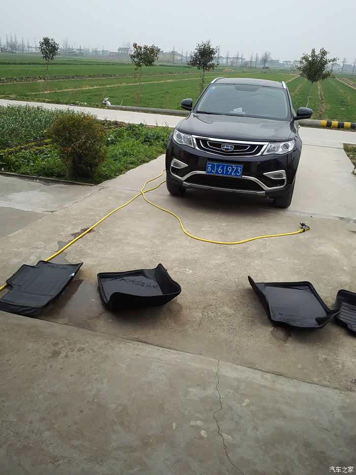 开了有一个月没洗了,今天放假就琢磨着把小越越清理干净,先把脚垫拿出来洗好放在那边晾,用车载吸尘器把角落里的沙子灰尘都吸掉,这些处理完毕就开始洗车打蜡了,这是个体力活,想想人家洗车工还是蛮辛苦的