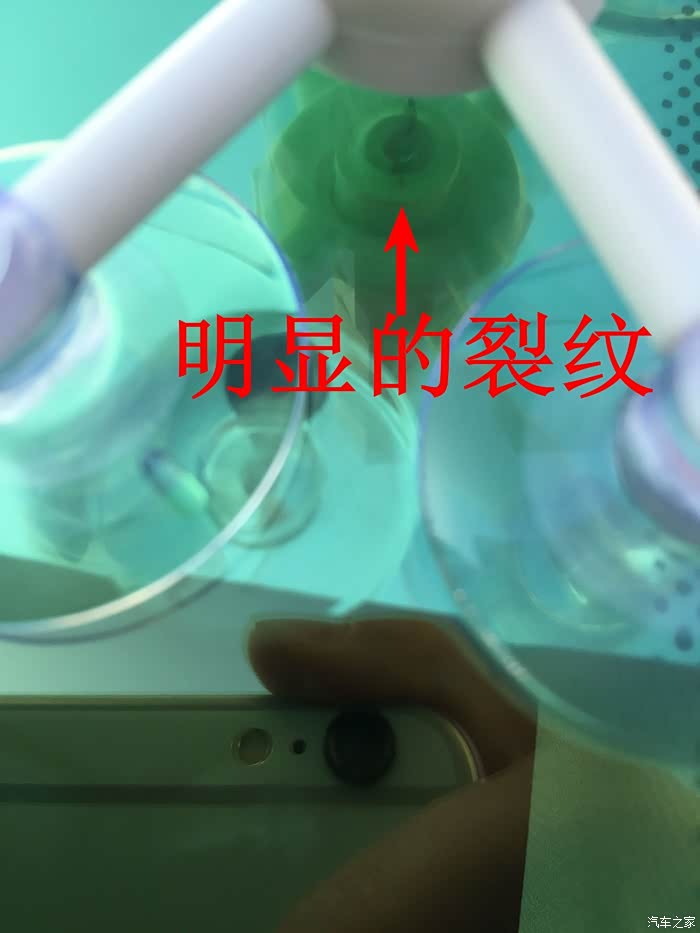 此时能明显得看到玻璃裂纹的中心在橡胶圈的凸起处