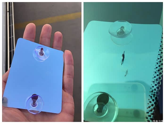 观测板的使用:将包装内两个小吸盘头部塞入金属板两侧小孔并分别向金属板两侧推到头,然后将吸盘固定于相应的破损的玻璃内侧。利用发光原理将破损部分和后续的橡胶圈的扩张及液体渗透情况呈现于金属板,以便于从外观察。