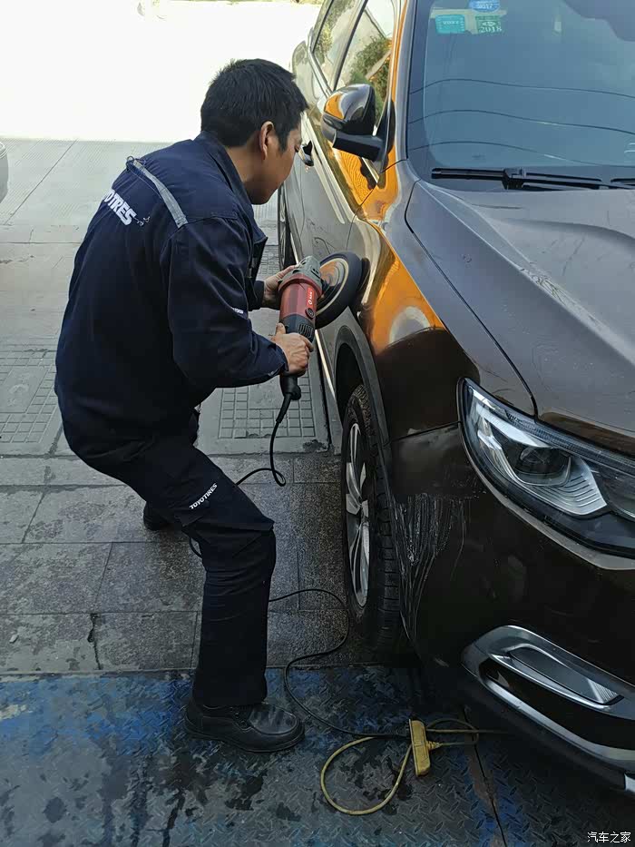 这个地方虽然不是上次修复的地方,但是我发现也被一些电瓶车刮伤了,所以我提醒了一下抛光。