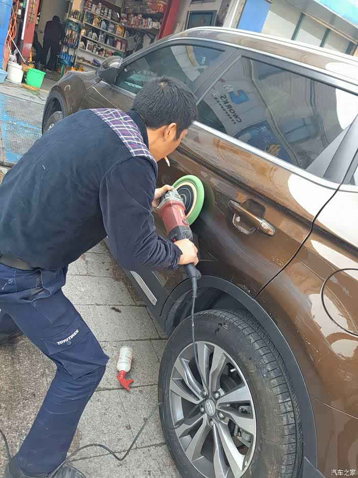 但是如果是抛光的话,就必须使用这种设备。因为手工打蜡只能去除一些小的划痕。一些比较深的,但是并没有露底漆的划痕是无法处理的。