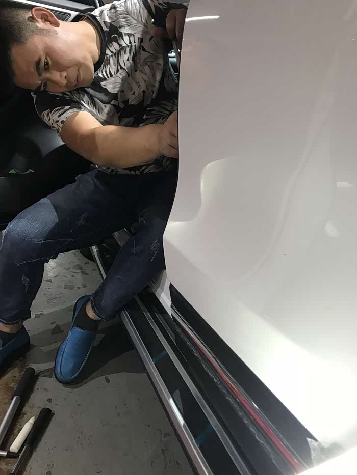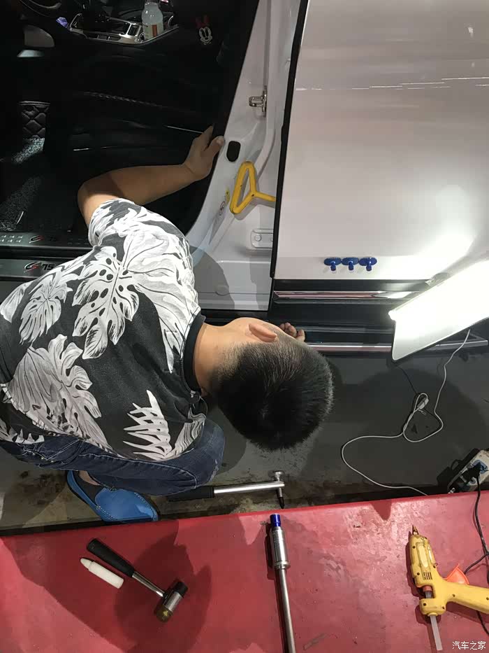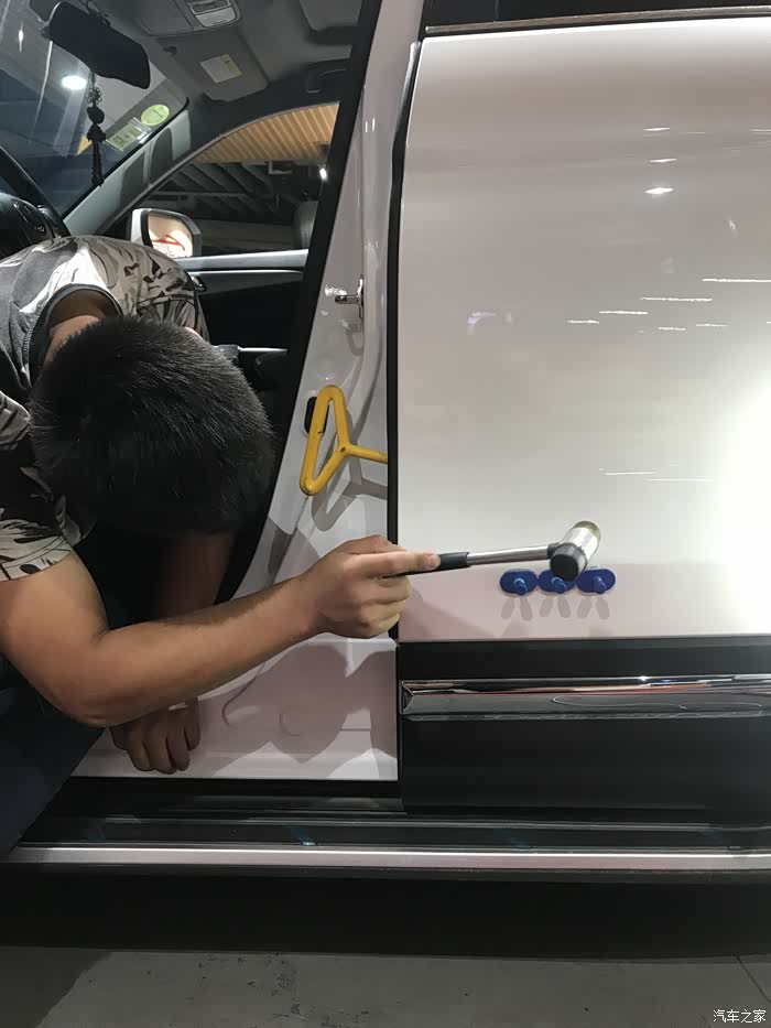 前段时间因为我的疏忽大意造成了大白的无辜剐蹭,还好不是什么太大的问题,事后也找地方进行了局部抛光,剐蹭印记也被技工基本处理干净了,本来事情已经告一段落了。有一天办事把车停好之后,走了5米远之后,在距离大白45度的位置,本能的转过头来想看看车门锁没锁,不看不要紧,这一看,隐隐约约发现左侧后门剐蹭的部位有点凹陷,不是那么的明显,就是找角度的话就能看出来,摸起来也有凹陷的感觉。好多车友建议我,可以无视它,其实吧不修复也罢,本来就不明显,不在意的话基本上是看不出来,可以等其他的损伤一起去修复,这没毛病。偏偏我有点完美主义,有点强迫症,既然让我看到了,就不得不想办法拯救我家大白,足以看出我对我家大白的爱惜程度,本来就是我的错,如果不修复的话,我的心天天在那悬着,影响开车影响心情,对大白也是一种愧疚。废话不多说了,上图吧,说多了全是眼泪啊!