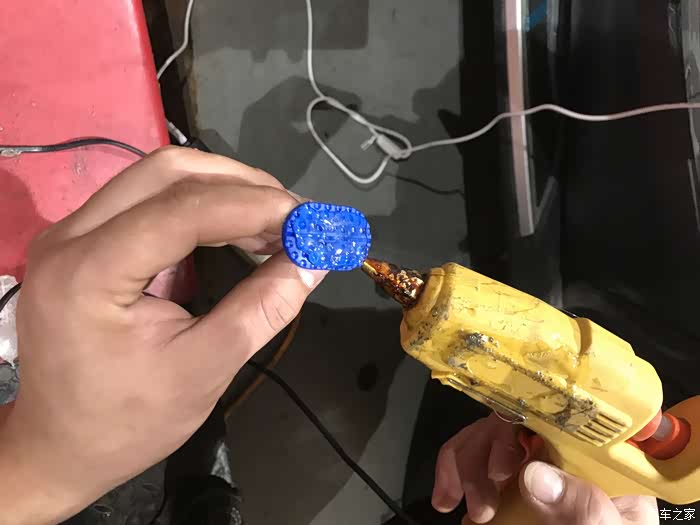 用热熔胶枪把胶条融化后,涂抹在吸盘上。