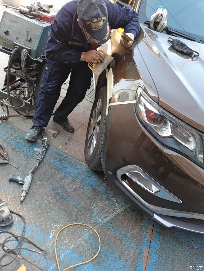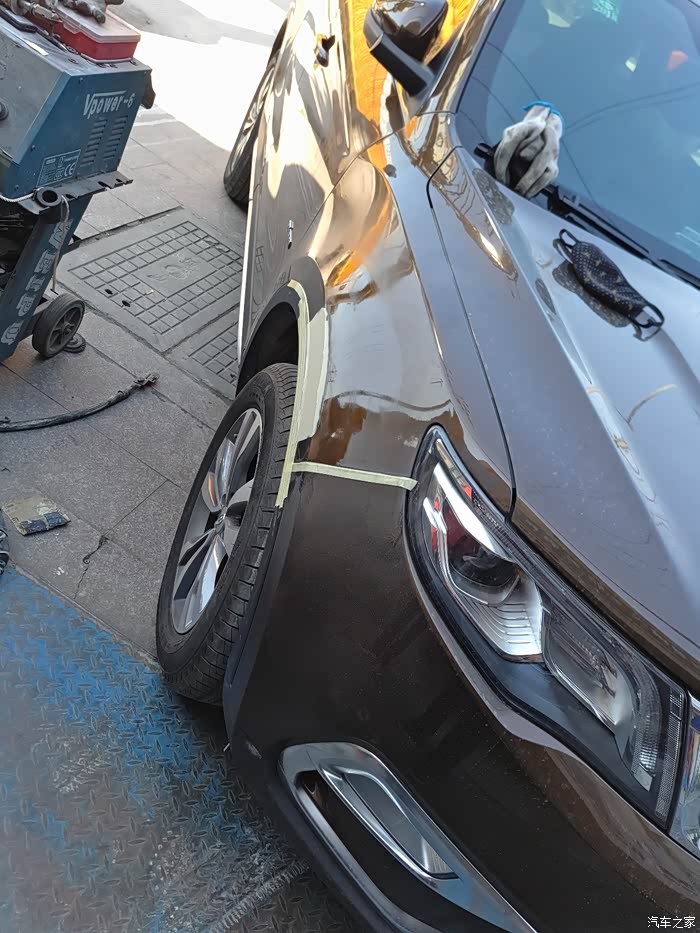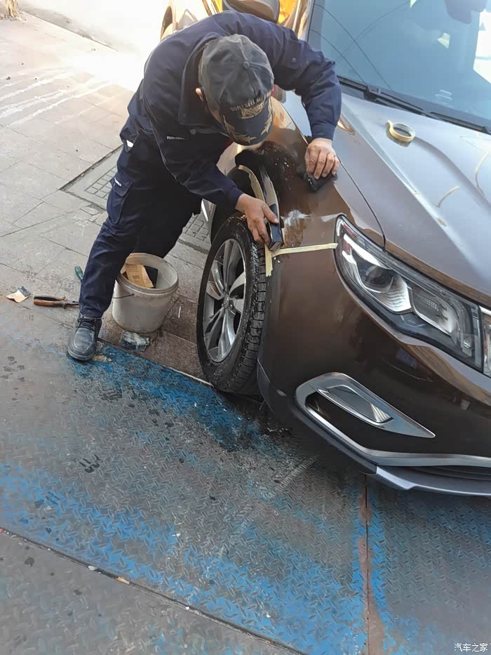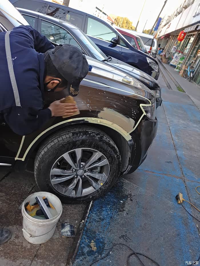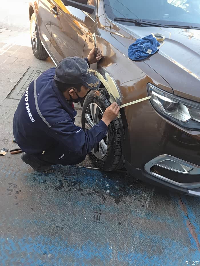 需要遮盖住其他部分以免喷到油漆,这里老板又做了一次“整形”,其实我早已看不出瑕疵了,一般修理厂没这等待遇吧!