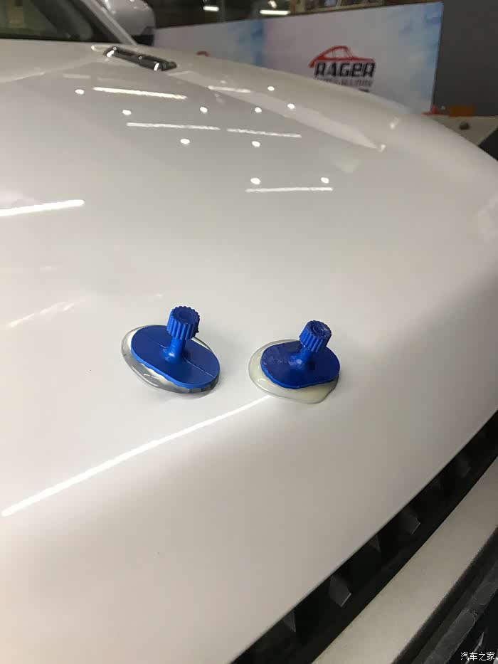 类似于拔罐的模式拽出凹陷的部分,这是现在的新型凹陷修复技术。大师傅对咱们这大75赞不绝口,都这样了,还没漏底漆,是够“硬汉”的!!!