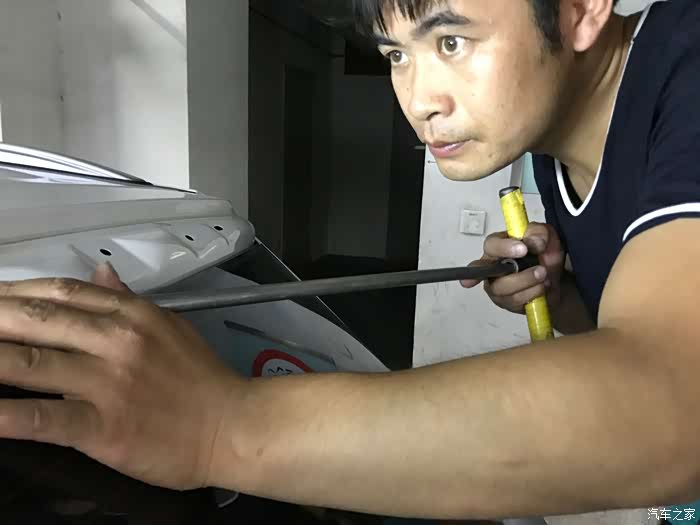 师傅看了看凹陷面,说用正常的吸盘,位置不太好,不太好吸,换个方案,用钩子顶。先把高位刹车灯的尾翼拆卸下来。