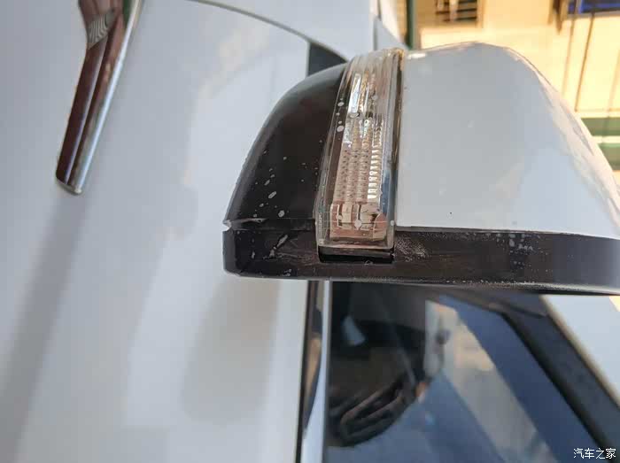 唉什么事都有两个面,我的大白虽然比一般车辆的后视镜更大视野更广,但是相对也更容易受伤。每每上下车以前,看着大白伤痕累累的两只大耳朵实在是心疼。保险吧后视镜虽然又不单独受保,自己花钱更换吧第一价格贵第二也怕以后再次受伤。但是在这里我也给大家讲一个真实案例,前几天倒车旁边停了一辆箱货,我自信满满的倒车中只听咔嚓一声左侧后视镜剐蹭到箱货车反方向折了90度,当时心想完蛋了这明显是东西碎裂的声音,心跳加速中。挂了D档向右侧打了点方向前进。奇迹发生了随着咔咔的声音后视镜又恢复原位了。赶快下车仔细查看先打开转向灯,后视镜上的转向灯正常点亮。在挂P挡熄火锁车自动折叠功能也正常使用。只有塑料件开裂但是所有功能完好。不幸中的万幸啊。
