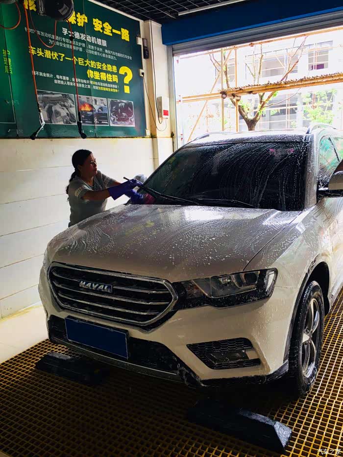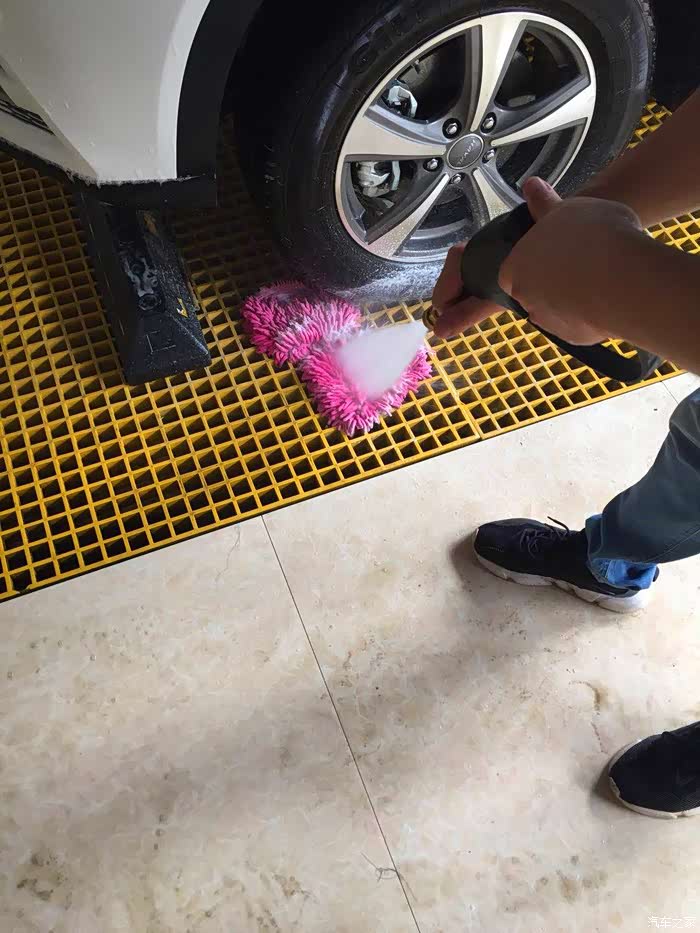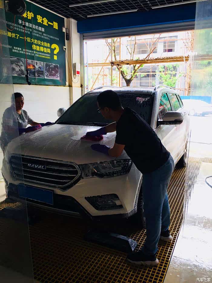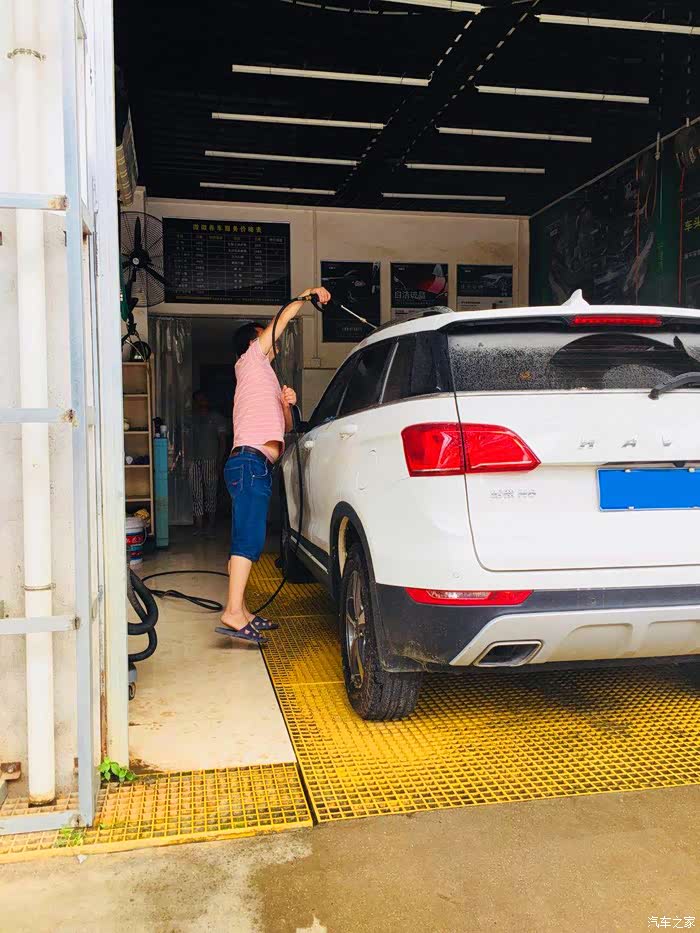 店里的洗车阿姨这会儿又空,看我一个人慢慢悠悠洗车怕影响后面车辆洗车进度,也帮忙搭把手帮我洗车。
