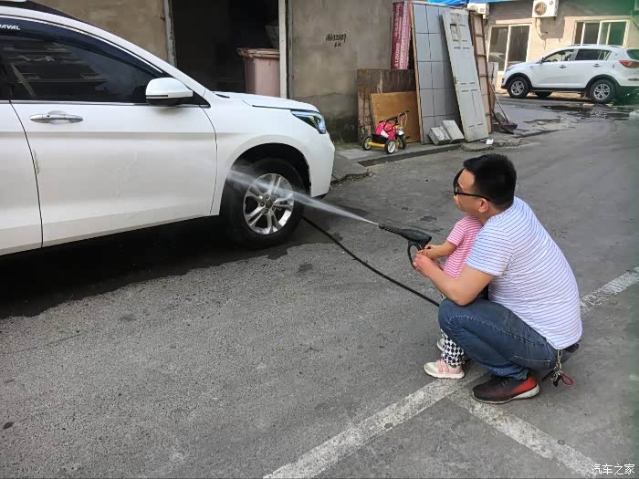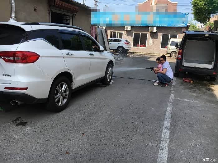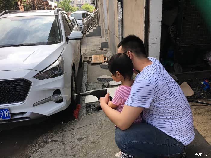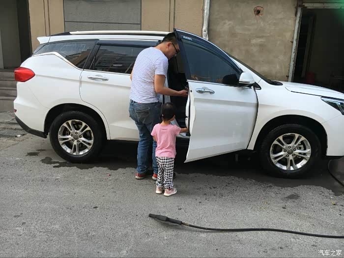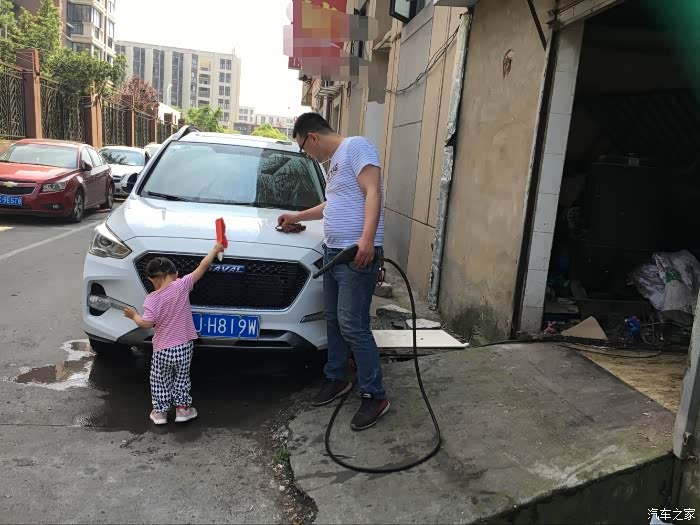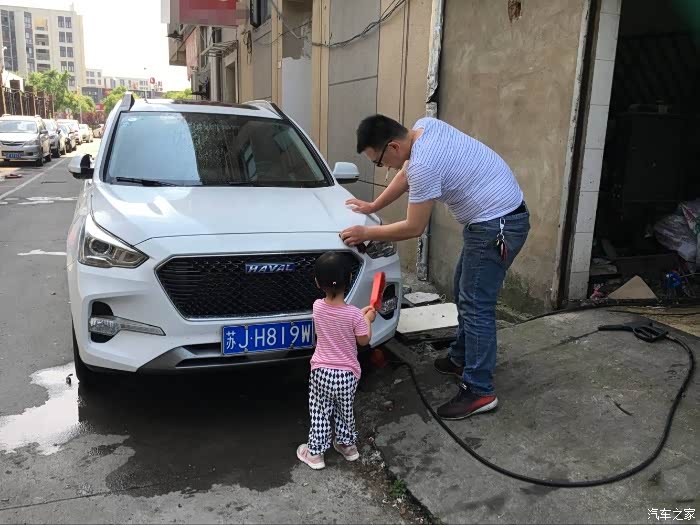 昨天我和老婆一起开车去岳父那边有事情。半夜归来,今早却发现我的哈弗m6上面有许多的昆虫都黏在进气口引擎盖大灯玻璃上,女儿到我这边来玩了,不如和女儿一起来洗个车。