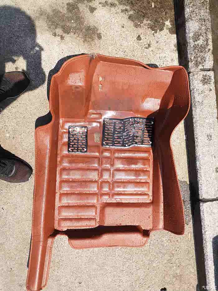 先把脚垫从地面上拿出来,定制的,有点不好拿下来