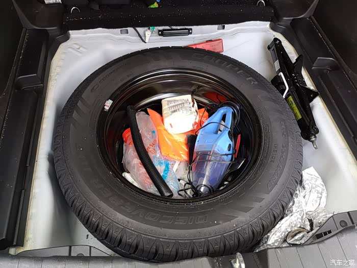 我把车上备用的东西都放在备胎中国的空挡里,还别说这空挡还挺大,吸尘器,灭火器,反光背心,都放的下去