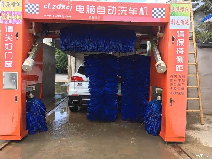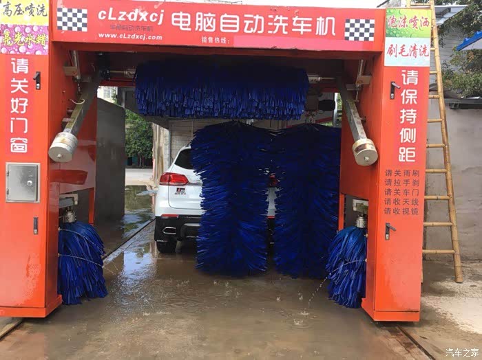 机器自动化洗车,快捷方便,车是就一些灰尘所以这样简单洗一下就好了,洗车阿姨很贴心,用高压水枪帮忙把轮胎的挡泥板内侧的泥冲洗干净,然后再启动机器洗车,看着车子从头洗到尾,就断断五分钟左右就洗好了,超级快,洗车也要注意停车角度,停在正中间就适合,如果停到靠的比较偏的话,洗车机在运行过程中,旋转手臂会碰到车的,自己下车检查好再让工作人员启动洗车机,免得伤到爱车