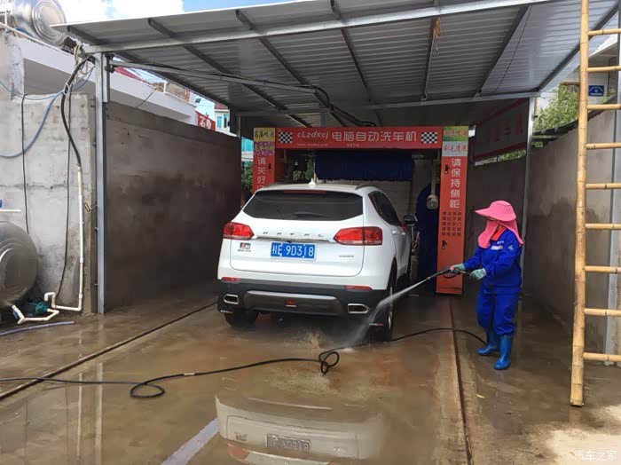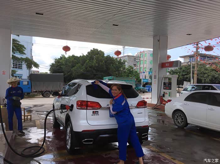 每次洗车都会到家旁边的加油站洗车,因为是免费洗车