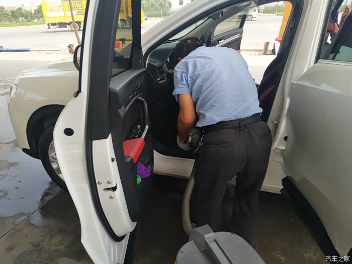 前一段天气时好时坏,一会儿晴空万里,一会儿乌云密布,两天下雨,两天晴,小四的身体已经两周没有洗澡了。今天带着小四去全自动洗车机体验一把,整体洗车过程需要20分钟,全自动洗车机的好处在于洗车非常快,不用占用过多的时间,而且还免费。这是一家刚开业的民营加油站,在我们当地的服务水平还可以,只要你的爱车在这里加油,都可以免费清洗车辆,与其他不同的是全自动洗车机洗完车辆外表后,由两人名技师工人对车内饰进行擦拭,从门把手到中控台,再到手套箱,每个细节都打扫的,非常到位。包括吸尘器使用比专业的洗车店清洗的毫不逊色。
