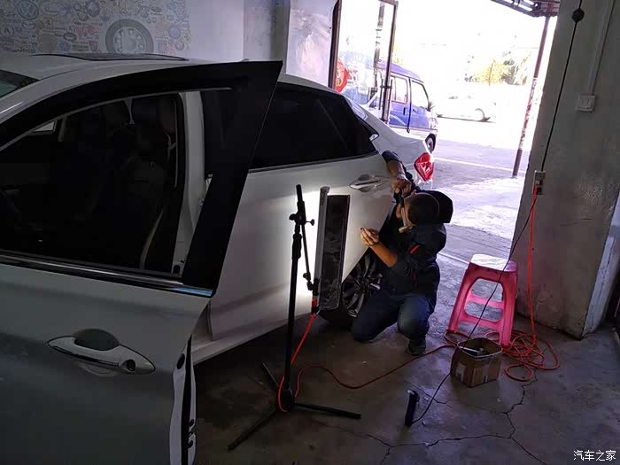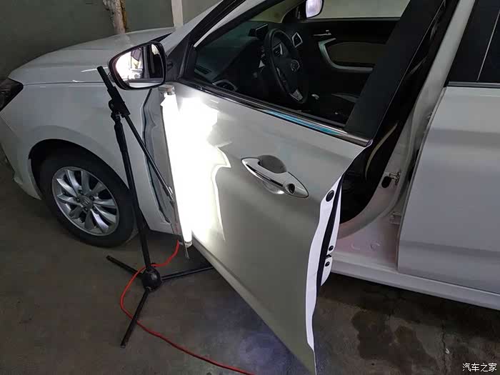 用黑色的塑料件,黏在车门上,用力拽出来。就这样修复完成。出来后,在拍几张照片看一下,几乎看不到了。