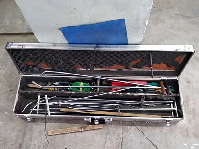 首先拍一张凹痕修复的工具,就是用这些东西来修复的。还用到了胶棒和拉钣金的塑料件。